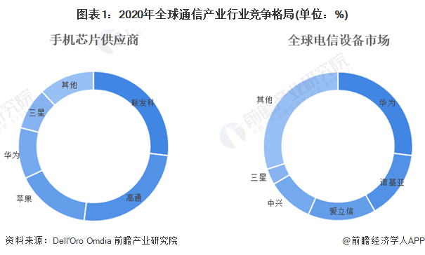 1、全球通信产业竞争格局:三星、华为、高通为全球领先的通信企业