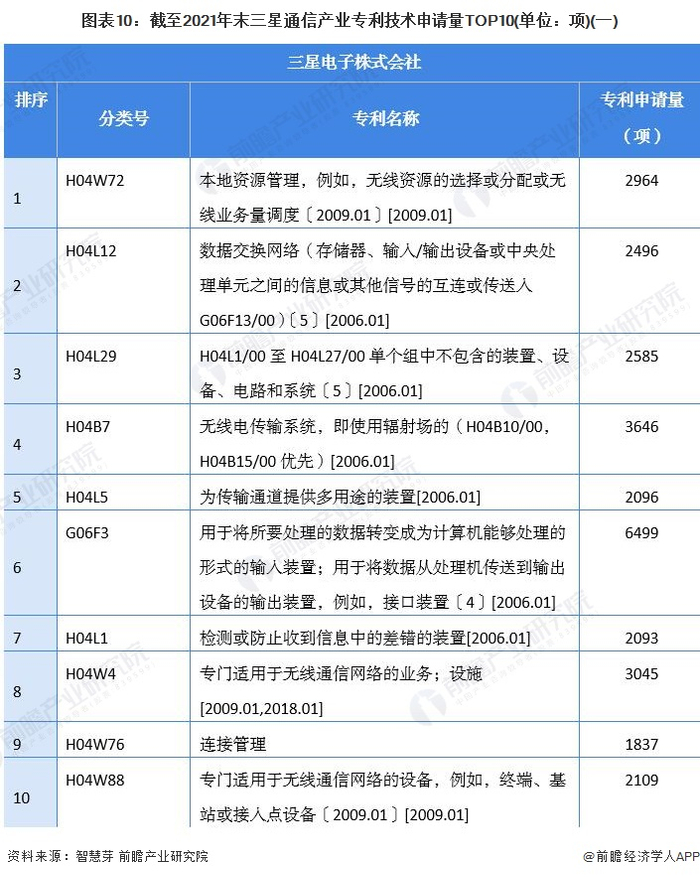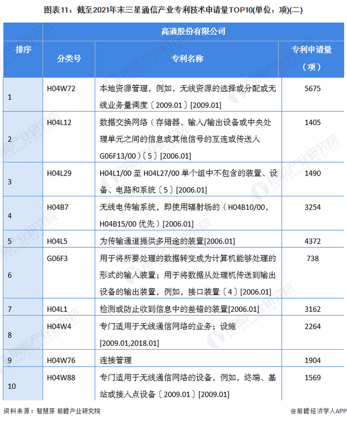 在专利合作申请方面,三星与其它人合作申请通信产业专利数量较多截至2021年末三星合作申请的通信产业专利数量高达8590项,高通和华为与其它人合作申请通信产业专利数量分别为2179项和1628项。