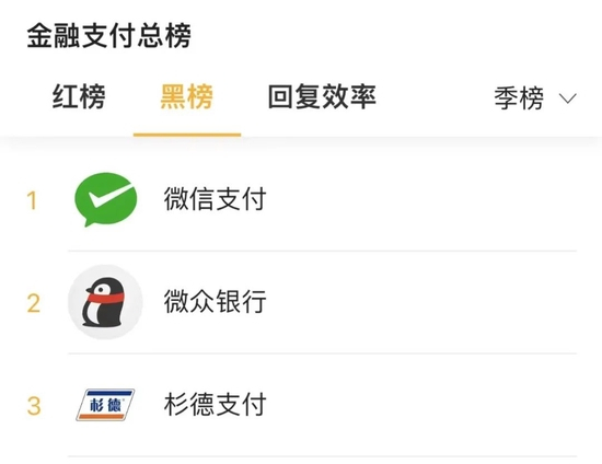 黑猫投诉信息显示,截至3月15日,微众银行投诉量达6152件,显示已回复的仅89件,已完成2件。因投诉量集中,记者注意到,微众银行还在黑猫投诉金融支付的季度黑榜中排名第二位。在一周投诉蹿升榜中,微粒贷排在第11位,上升了7个名次。