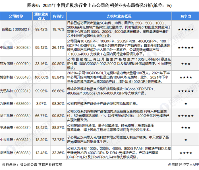 【最全】2022年光模块行业上市公司全方位对比(附业务布局汇总、业绩对比、业务规划等)