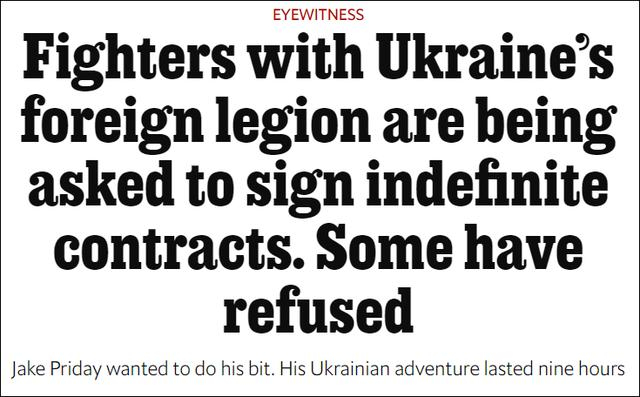 老兵显然对这一合同条款十分不满,拒签合同的他迅速离开了乌克兰,“对我而言,这就是欺骗……他们向你兜售了一个帮助乌克兰人民的梦想,却把你丢到了战区中恐怕最恶劣的环境之下。”