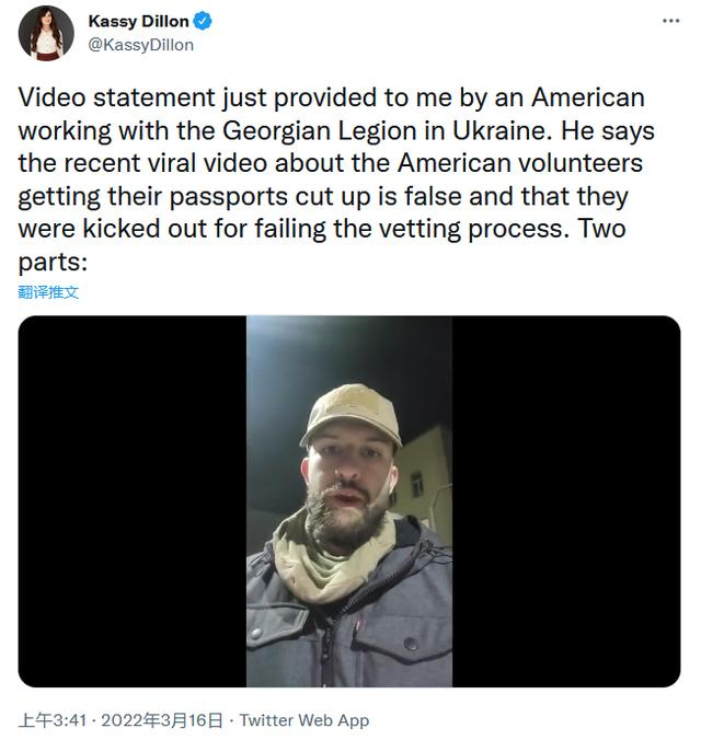 Kassy Dillon公布据称是“格鲁吉亚国家军团”美国雇佣兵的澄清