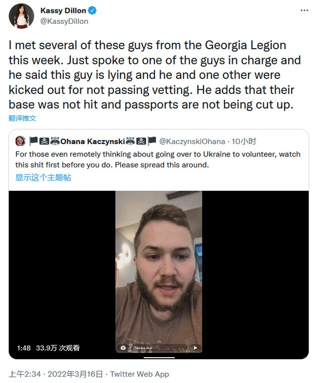 亨利这段在乌惨烈经历很快在推特上获得众多关注,但随后美国保守派新闻网站《每日连线》(The Daily Wire)的记者Kassy Dillon却反驳了他的说法。