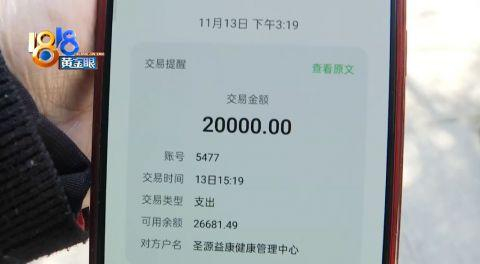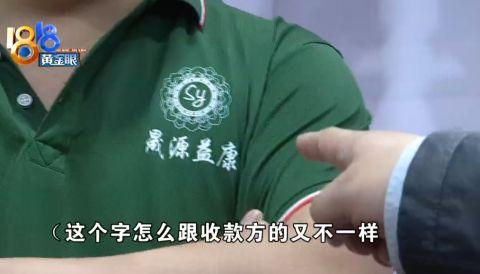 阿姨此前都是转账给“圣源益康健康管理中心”,这名男店员穿的工作服上写的是“晟源益康”,只有一字之差。