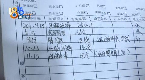 店里挂着横幅,写着“热烈庆祝总公司成立12周年”,总公司是哪个公司,对方不肯说。墙上还写着“道承”两个字,记者查询过,不少足浴店和养生馆的名字中都带着“道承”两个字,因此也无法肯定总公司指的到底是哪家公司。在陆女士一再坚持下,店员出示了她母亲的档案,陆女士发现了问题。
