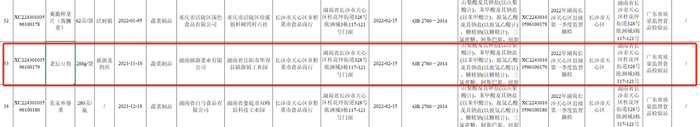 据启信宝,湖南插旗菜业有限公司,成立于2005年5月16日,注册资本为1200万人民币,法定代表人为严钦武,经营状态为存续,注册地址为湖南省华容县插旗镇工业园。而就在12天前,长沙市天心区市场监管局还公示了抽检该公司生产的“老坛豆角”的检测结果,抽样时间为2022年2月5日,抽检结果显示合格。