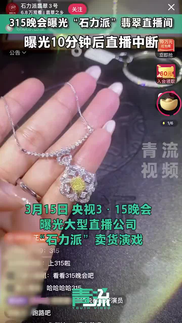 “石力派”翡翠直播间被曝光10分钟后中断 网友:315晚会正曝光你家