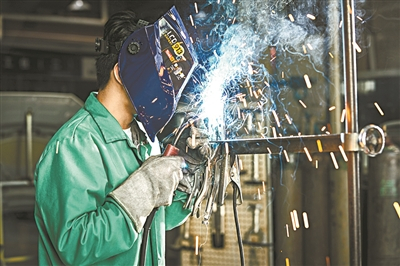 学生在焊接钣金件。