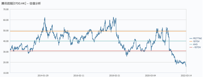 以腾讯为例,截至最新收盘,腾讯的PE(TTM)已降至12.35倍,已经是十年以来的最低估值,甚至是腾讯上市以来的最低水位。