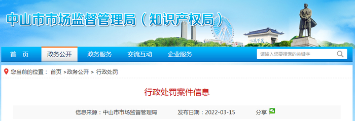 广东省中山市市场监管局发布3起行政处罚案件信息