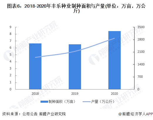 2018-2020年,丰乐种业制种面积与产量呈上升趋势。2020年,公司制种面积与产量分别达8.43万亩与2872.75万公斤。