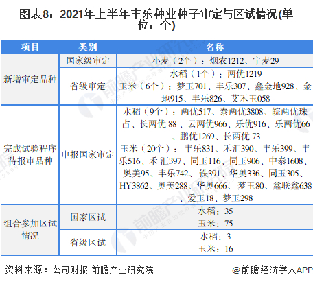 2021年上半年,公司选育和审定品种9个,其中国审品种2个,省审品种7个;完成试验程序待报审品种29个(全为国审),参加区试组合129个次。