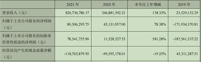 北清环能2021年年报部分财务数据