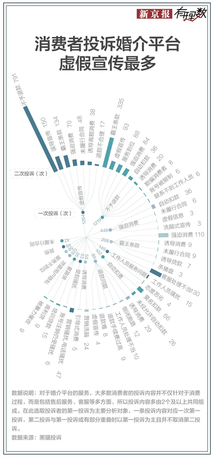 在相关投诉平台上,涉及大量婚介服务的投诉。这些投诉聚焦于虚假承诺,哄骗式消费,引导消费者使用信用卡或其他信贷产品付款,费用高退款难,霸王合同条款,服务质量差,未履行服务承诺及营销骚扰等问题。