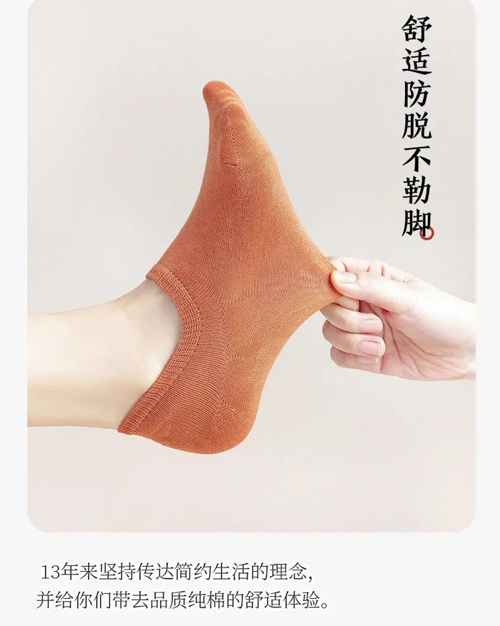 没有任何多余的设计与线头,简约大方,穿上脚效果更是舒服,没有束缚感,再加上纯棉的质感,真的太亲肤了,双脚就像踩在云层中似的,很舒服。