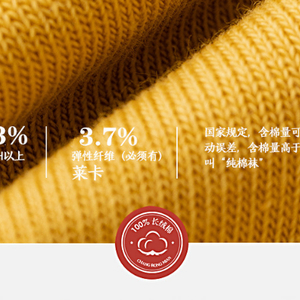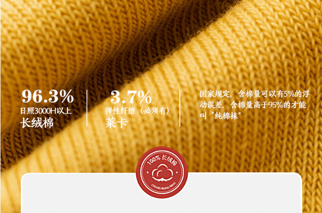 大家都知道“百分之100棉”是没有柔韧性的,为了能大限度提高袜子的棉含量,保证袜子富有弹力,同时穿起来还要舒服。