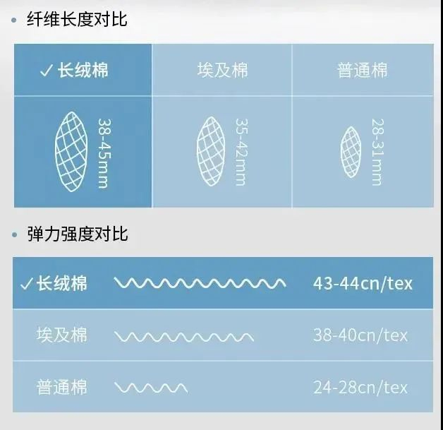 长绒棉的纤维长度为38-45mm,是普通棉花的1.5倍,弹力强度等各项指标都优于普通和进口的棉花。