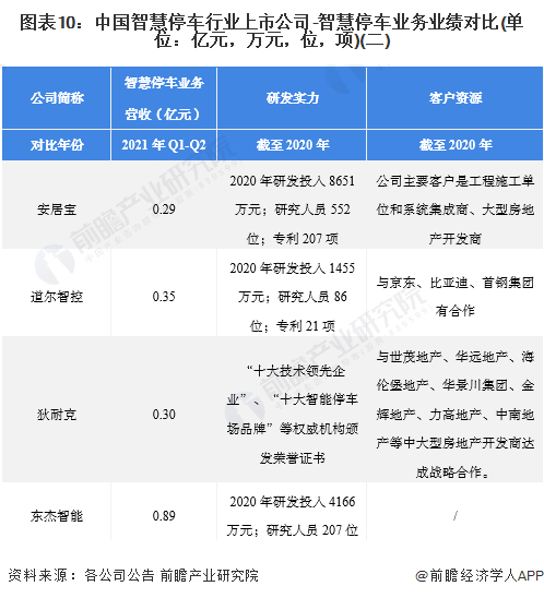 2、智慧停车行业上市公司业务布局对比