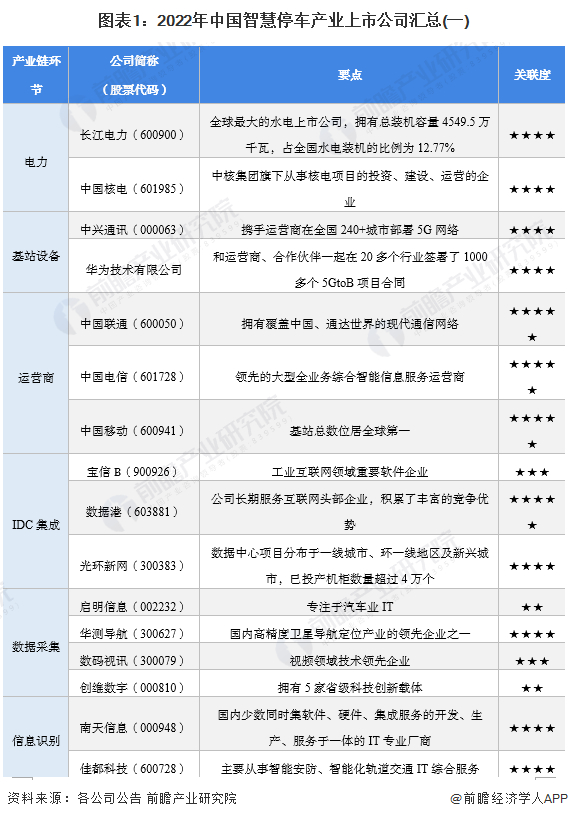 1、智慧停车产业上市公司汇总