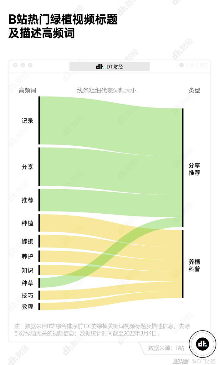 于是我们发现,B站综合排序前100的绿植相关视频中,主要是两大类:分享推荐和养殖科普。