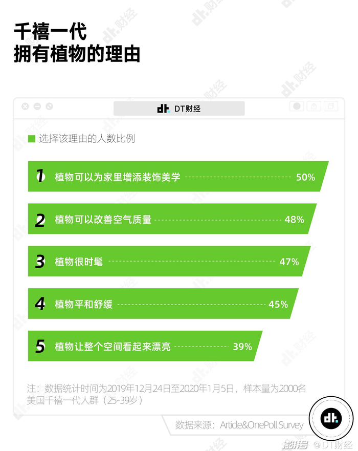 然而从调研数据来看,现在年轻人养绿植的最主要目的不是为了更好的空气,而是为了美。