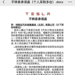 特斯拉“不转卖承诺函”,一年内卖车赔20%车款?回应:属实