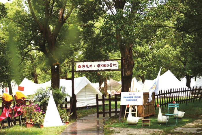 位于梅花洲的嗨king野奢营地,很多人来到这里的第一感觉就是“有范儿”,独立的天幕和帐篷,私密且安逸,相比传统帐篷的狭窄和拥挤,该营地的帐篷内还有舒适的床品和配套器具,让露营都“奢侈”了起来。营长何方告诉记者,目前营地内共有26顶帐篷,客人主要是喜欢体验的年轻人以及亲子家庭。