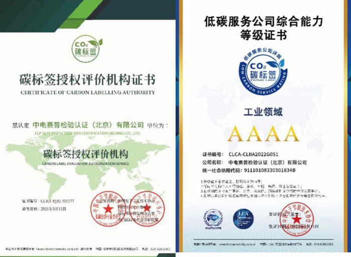 3月11日,由工信部指导的中国电子节能技术协会低碳经济专业委员会发布第七批碳标签授权评价服务机构名单,中国电科院所属中电赛普检验认证(北京)有限公司成为 “碳标签授权评价机构”,并获AAAA级(工业领域)低碳服务公司综合能力等级证书,标志着赛普认证公司已具备提供碳标签评价认证服务的能力。