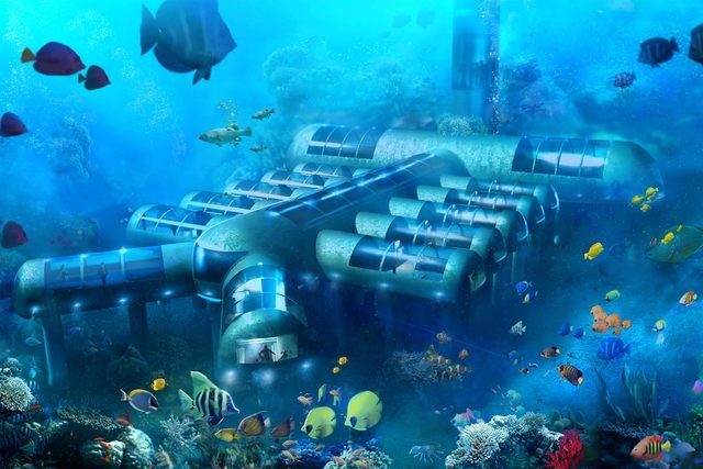 所有人员乘坐无声列车通过一条长约510米的树胶玻璃隧道,抵达海底酒店。饭店共有220个豪华套房,游客可以选择喜欢的房间入住,比如“水泡套房”里,墙壁和天花板都是透明的,游客可以躺在床上欣赏水下五彩缤纷的海洋生物。
