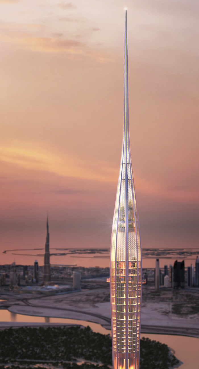 没错,这座高塔预定高度约1100~1345米,建成后将超越现在“世界第一高楼”828米的哈利法塔(Burj Khalifa)和吉达正在兴建的1008 米的吉达塔(Jeddah Tower),成为全球最高建筑物与人工构造物。值得一提的是,迪拜湾塔和哈利法塔的开发商都是迪拜著名的伊玛尔地产。