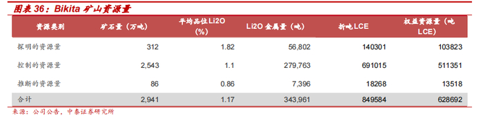 2)Bikita矿山:2022年2月10日公司发布公告称,拟以1.8亿美元收购Bikita项目74%股权,且公司正在实施内部重组和股份回购注销,未来存在进一步将权益比例增加至100%的可能性。Bikita锂矿项目处于生产阶段,主要产品为品位高、杂质低的技术级透锂长石精矿和铯榴石精矿。Bikita锂矿区累计探获的保有锂矿产资源量为2941.40万吨矿石量,Li2O平均品位1.17%,Li2O金属含量34.40万吨,折合84.96万吨LCE。目前Bikita具备70万吨选矿能力(约7万吨锂精矿,Li2O品位在4%-6%),未来计划新建105万吨选矿产能。