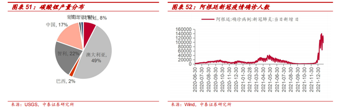 新冠疫情对供给和需求影响仍然呈现非对称性,下游需求影响已经消除,而对于供给端的扰动仍然在持续,表现为劳动力资源短缺、物流不畅等,由于奥密克戎的爆发,锂资源主要生产国智利、澳大利亚、阿根廷新增确诊人数再次爆发,供给端新增扩建、生产低于预期可能性较大(例如 阿根廷Sal de Vida盐湖投产时间由22年下半年推迟至23年下半年)。