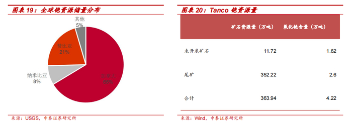 布局铷铯全产业链,开拓锂盐业务。公司主要业务为稀有轻金属资源开发与利用业务、固体矿产勘查技术服务和矿权开发业务,在全球范围内从事铯铷矿开采,铯铷盐和锂盐研发、生产和销售,为海外矿业企业提供优质的地质勘查技术服务以及自身的矿权获取、增值和价值转化。1)铯铷盐业务:公司是铯铷盐精细化工领域的龙头企业,具备铯榴石开采、加工、精细化工产品生产和提供产品技术服务的能力,是全球铯产业链最完善的制造商。2)锂盐业务:公司是中国电池级氟化锂的主要生产商与供应商。21年底将氟化锂产能从3000吨扩张至6000吨,同时25000吨/年电池级氢氧化锂和电池级碳酸锂柔性生产线于21年8月建成投产,2022年公告拟扩建3.5万吨锂盐项目,达产后公司将具备6万吨锂盐产能。公司拟收购Bikita矿山74%股权,不断补齐资源端的短板,资源自给率有望从25%左右提升至100%。3)固体矿产勘查技术服务和矿权投资业务:公司拥有专业化、经验丰富的国际地质勘查技术和管理团队,目前拥有采矿权37处、探矿权44处、地表租约13处、采石场矿权1处,主要矿权分布在加拿大曼尼托巴省TANCO矿区、赞比亚西北省希富玛铜矿、赞比亚西北省卡马提克铁矿、津巴布韦铬铁矿和赞比亚卡布韦铜矿。