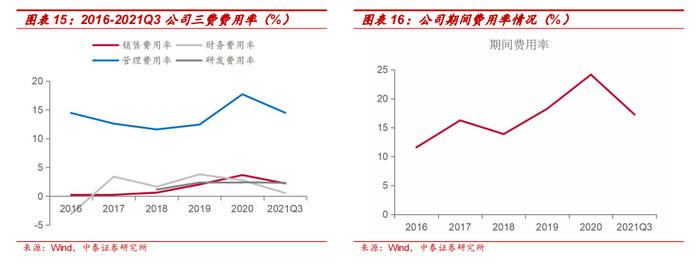 锂盐项目投产,公司期间费用率有望快速下降。公司期间费用率从2016年11.57%增长至2020年24.13%,主要系东鹏新材计提超额业绩奖励及CSF纳入合并报表所致。随着公司锂盐项目的产能释放,收入加速增长,期间费用率有望快速下降。