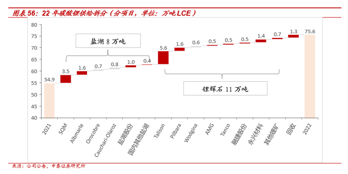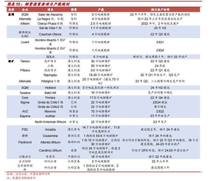 从当前的扩产规划来看,供给端投放呈现以下特点:1)从时间上来看,供给产能规划投产时间点多在22年下半年及以后;2)从地区分布来看,阿根廷盐湖、北美、非洲绿地项目逐渐增多,受制于基建、疫情、开发难度等多种因素影响,这些地区的项目投产时间进一步延后可能性较大。