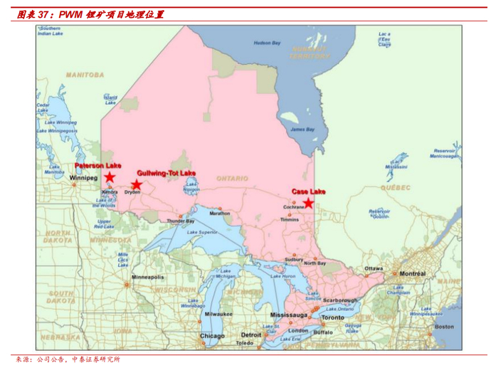 3)PWM公司:2021年12月17日,公司拟以150万加元认购加拿大上市公司Power Metals Corp(动力金属公司)5.72%股权,PWM拥有加拿大Case湖、Paterson湖、Gullwing-Tot湖等三湖伟晶岩型锂矿项目,自2018年在Case湖区发现锂辉矿型伟晶岩以来陆续在三湖区内发现具有锂铯钽矿化的伟晶岩。香港中矿稀有公司与PWM签署Case湖项目的全部锂、铯、钽产品的包销协议。