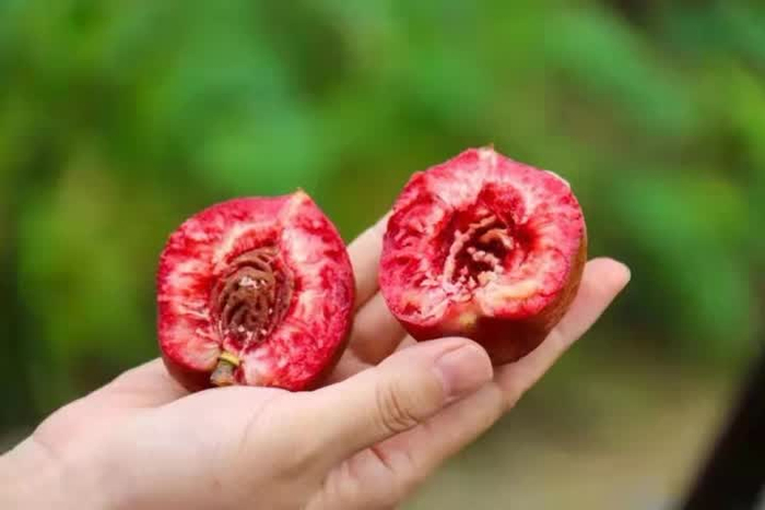紫桃以富含花青素而闻名。果面光洁无毛,果皮厚,果肉呈紫红色,酸甜适中,风味独特,备受消费者青睐。