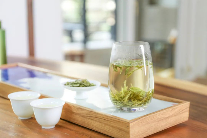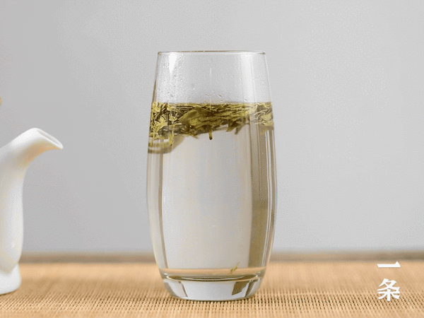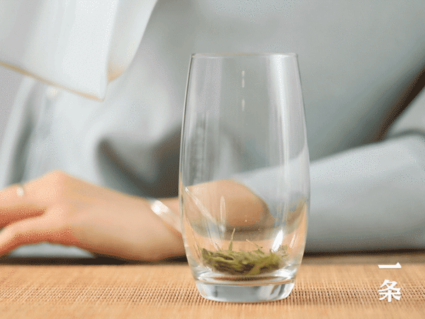 茶叶在杯中逐渐伸展,一旗一枪,上下沉浮,汤明色绿,历历在目。