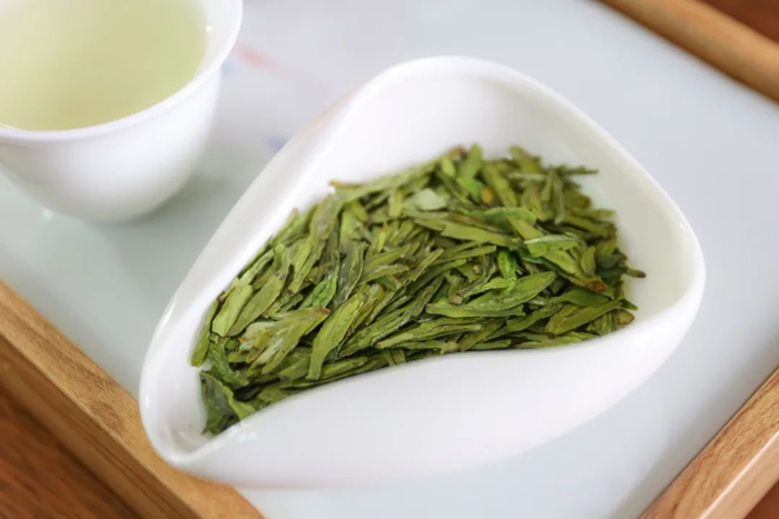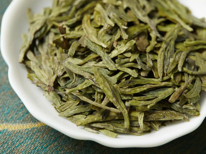 上等的明前狮峰龙井,形态扁平、光滑,色泽嫩绿光润,香气馥郁。