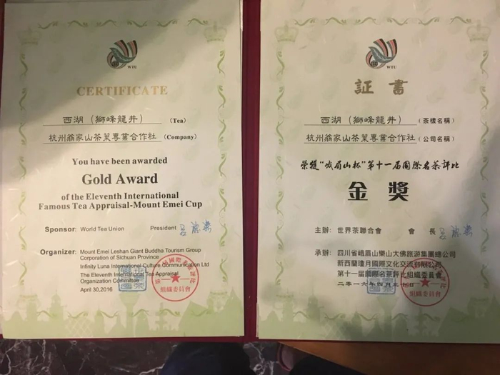 由他炒制的狮峰龙井,曾荣获“峨眉山杯”第十一届国际名茶评比金奖。