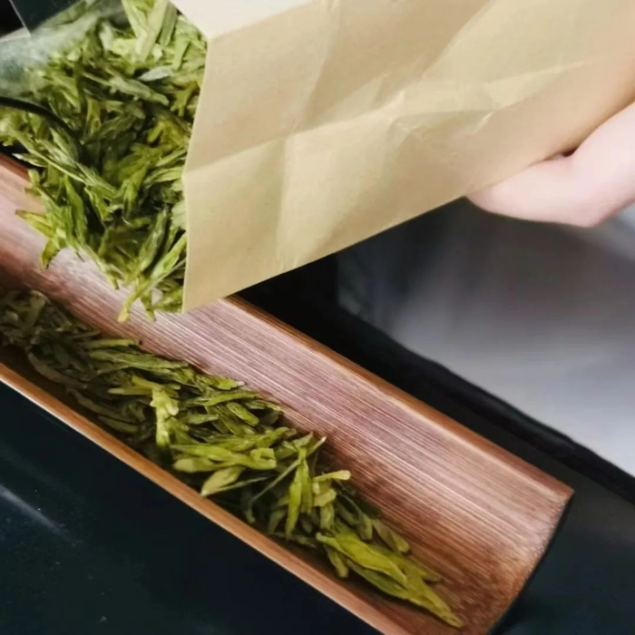 特级狮峰龙井,内含物丰富,茶多酚含量高,老茶农称“汁水足”,冲泡后色泽明亮,绿中带翠。