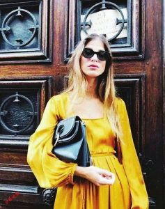 方领的设计很复古,能够凸显出女性的肩颈线条,尤其是领口开得比较大的方领,会将女性的颈部线条展现得淋漓尽致。比较常见的方领服装是连衣裙,款式非常多,不管是长裙还是短裙,都可以和方领进行结合。