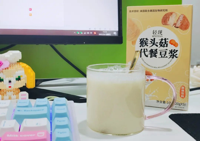 轻现这款豆浆最心动的是它里面特别添加的猴头菇成分!
