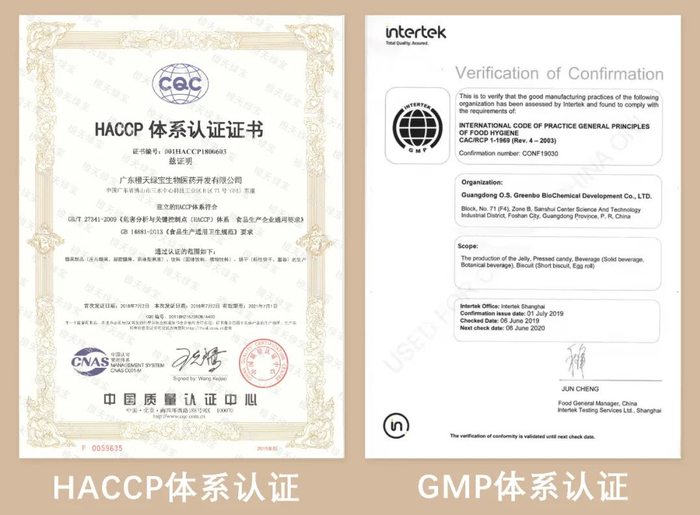 并通过GMP和HACCP体系认证,品质保证,放心选!