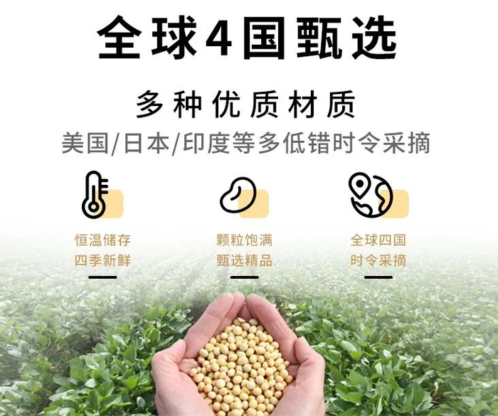 市面上很多厂家使用低价差黄豆,喝起来带着苦味,而轻现用的大豆是黑龙江的优质品种。