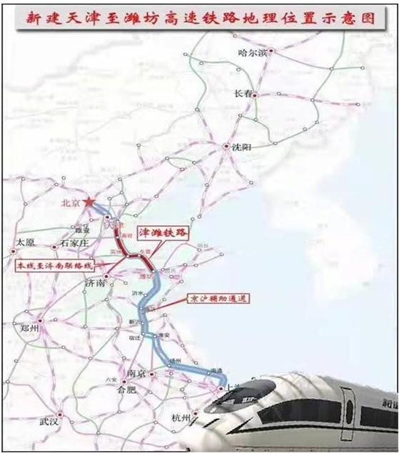 其次,可以判断,京沪高铁二线在天津、山东、江苏北部需要新建设的有“两段”:天津到潍坊的津潍高速铁路、潍坊到宿迁的潍宿高速铁路。今年1月,国家发改委正式发文,批复新建天津至潍坊高速铁路可行性研究报告,标志着项目正式立项,进入实质性实施阶段;根据山东临沂、日照发布的信息,潍坊至宿迁铁路工程上半年或11月开工。这就说明,这“两段”高铁,今年都将开工或有望开工。