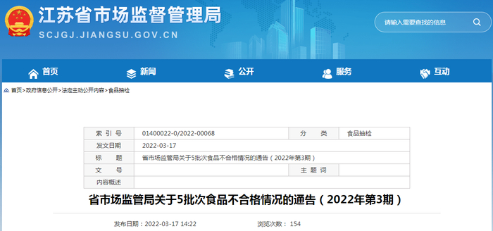 中国质量新闻网讯 3月17日,江苏省市场监管局网站发布2022年第3期食品抽检信息,涉及91批次酒类产品抽检合格信息。