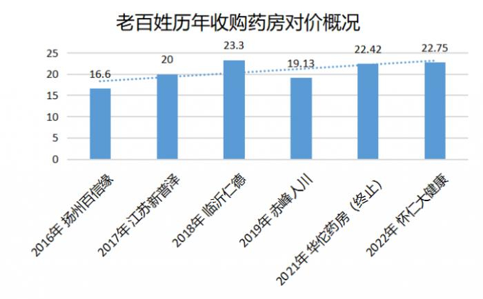 根据21世纪经济报道统计,自2015年上市以来,老百姓母公司先后收购了惠仁堂、扬州百信缘,通辽泽强,赤峰人川大药房,江苏新普泽,江苏百佳惠,山西百汇等区域性连锁药房龙头。