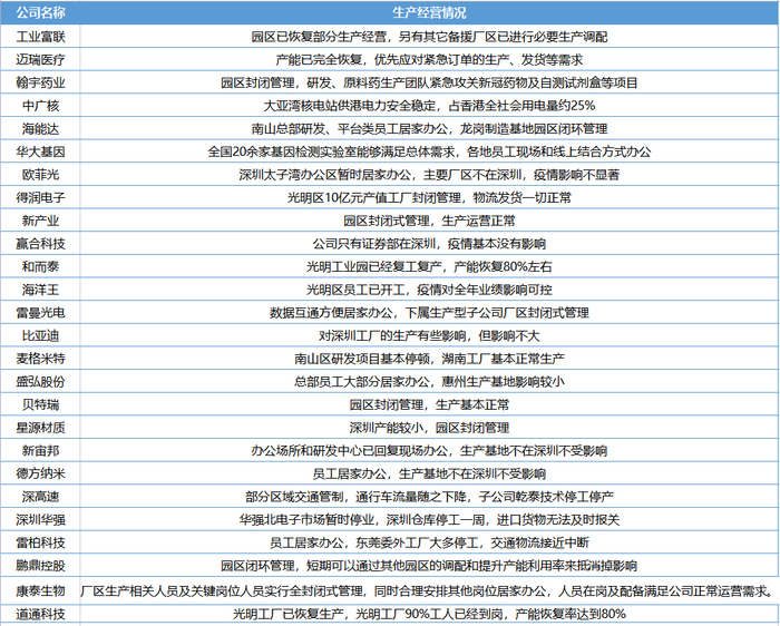 从记者的采访来看,其他区域上市公司目前已在为正常经营生产而努力。