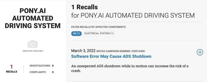 3月3日,小马智行向NHTSA就其去年10月在无人驾驶路测时发生的事故提交召回报告。这也是L4自动驾驶软件的首例召回。